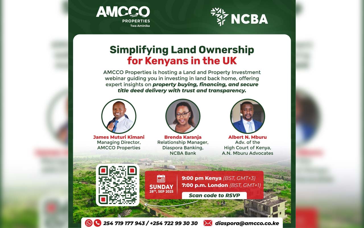 The impressive turnout reflected growing diaspora interest in Kenyan property investment. Attendees gained comprehensive insights into AMCCO's product offerings, financing options through NCBA Bank, and the legal framework of land ownership – empowering informed investment decisions from anywhere in the world.